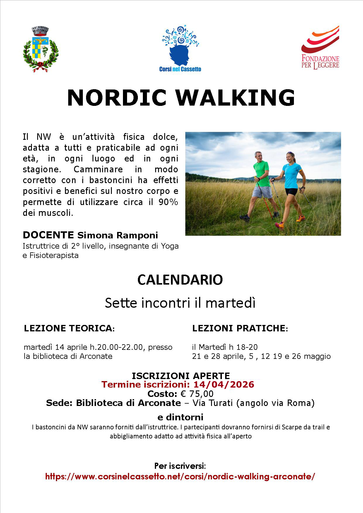 Maggiori informazioni e iscrizioni: https://www.corsinelcassetto.net/corsi/nordic-walking-arconate