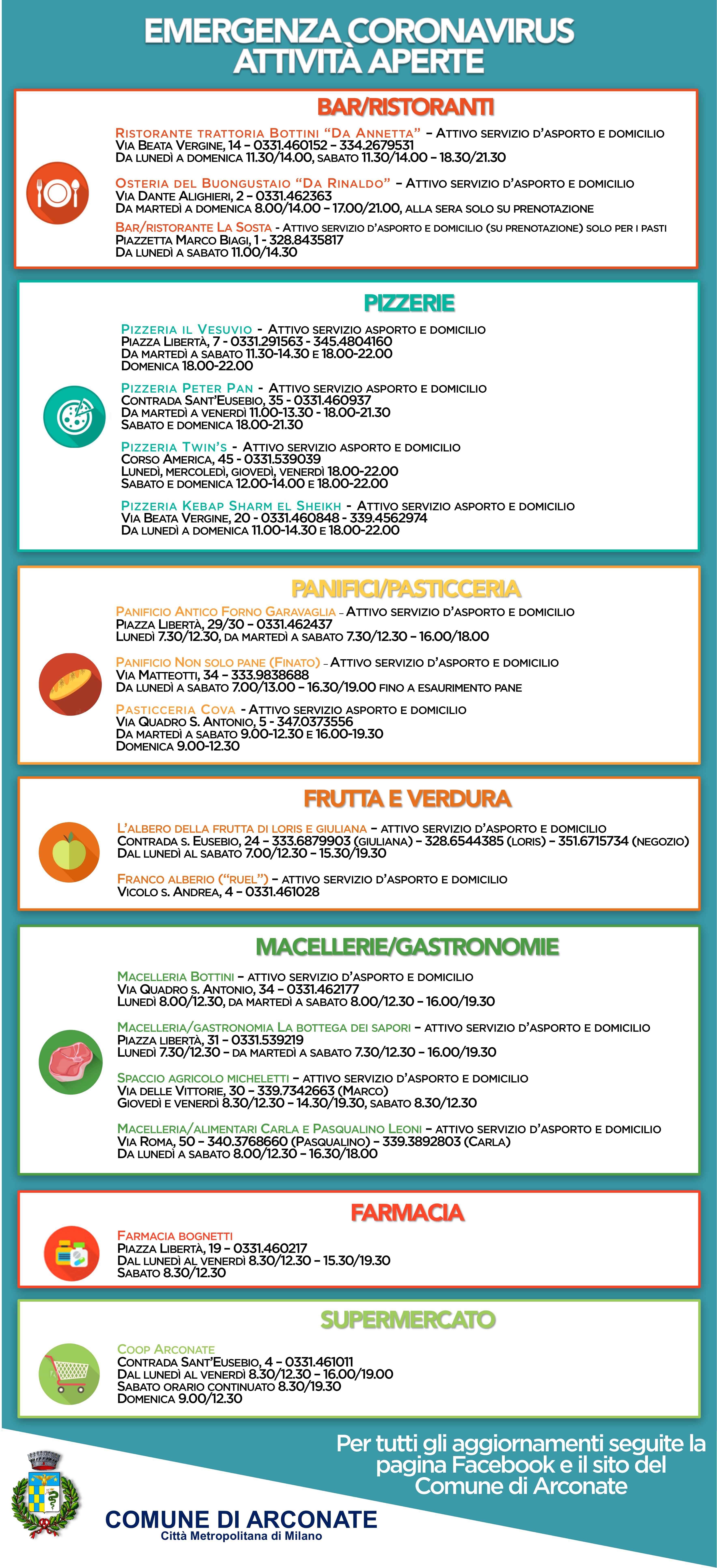 L'ELENCO DI TUTTI I NEGOZI ALIMENTARI E BENI ESSENZIALI APERTI AD ARCONATE: SOSTENIAMO I NOSTRI COMMERCIANTI!