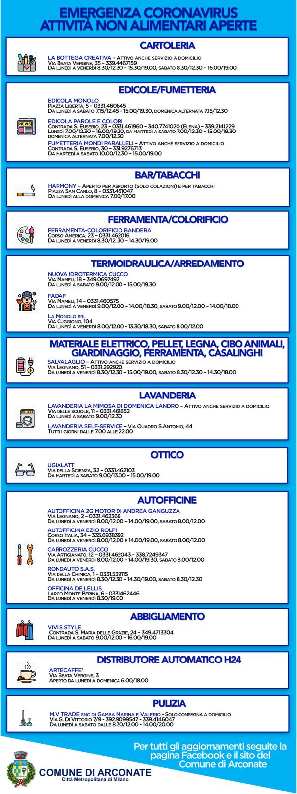 In allegato i due volantini per poter consultare tutte le attività alimentari e di beni essenziali aperte.