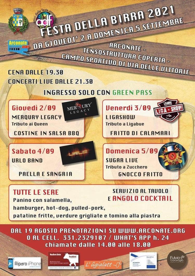 ATTENZIONE - Si consiglia caldamente la prenotazione sul sito https://www.comune.arconate.mi.it/vivere/festabirra/ o al numero di telefono 331.2329107.