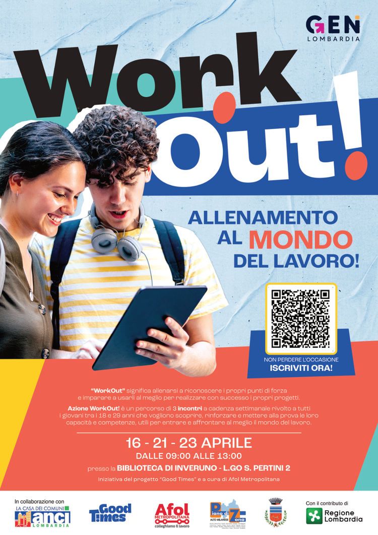 Progetto "Good Times 0.1" e Afol Metropolitana promuovono l'iniziativa "WORK OUT! Allenamento al mondo del lavoro", un percorso di 3 incontri per i giovani tra i 18 ed i 29 anni che vogliono scoprire, rinforzare, e mettere alla prova le loro competenze, utili per entrare e affrontare al meglio il mondo del lavoro.
