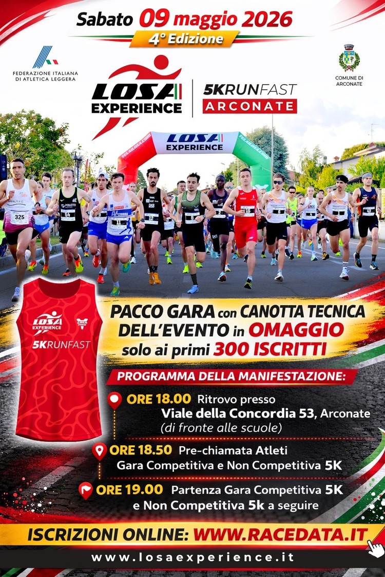 Quarta edizione di “LOSA EXPERIENCE 5k Run Fast“, la Competizione Podistica organizzata dalla Polisportiva LOSA in collaborazione con il Comune di Arconate.