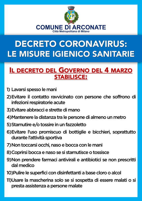 Ecco le 11 regole di “buona igiene” che Regione Lombardia e Governo ci chiedono di adottare nelle prossime settimane. In questo momento è importante che ognuno faccia la sua parte per raggiungere il risultato! Prestiamo attenzione e usiamo responsabilità e buon senso.